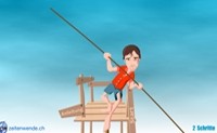 Help the dare devil cross the tight rope safely by angling his balance correctly. If he begins to falter towards the right, move your mouse to the left to counteract his weight! It works in reverse too. Watch out for birds! They may land on your balance bar and throw you off!
